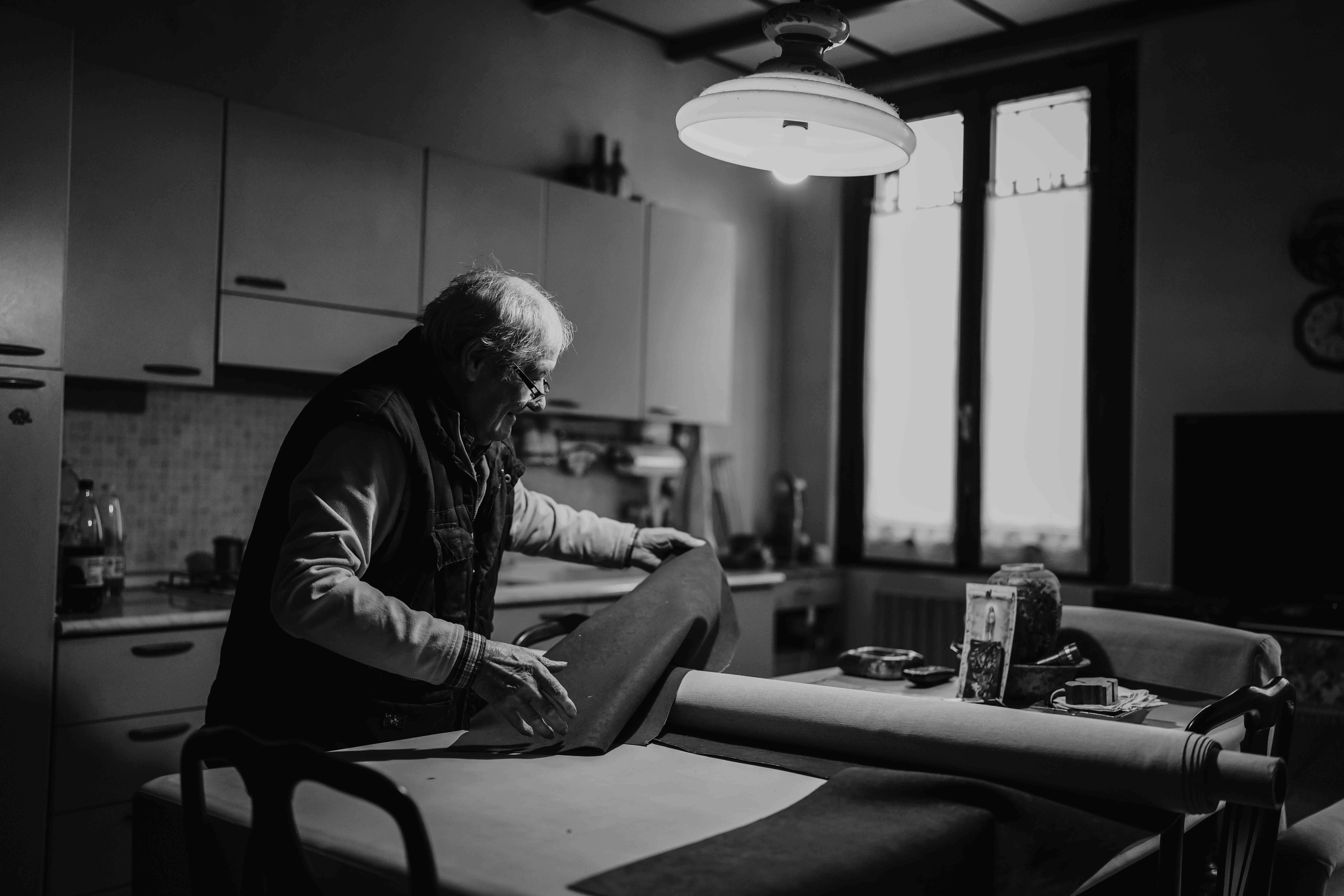 Vincenzo ha cominciato da ragazzo, tra il profumo del legno e la polvere delle botteghe. Prima falegname, poi lucidatore di mobili, infine tappezziere. Ogni gesto imparato con pazienza, ogni attrezzo diventato un’estensione delle sue mani.
